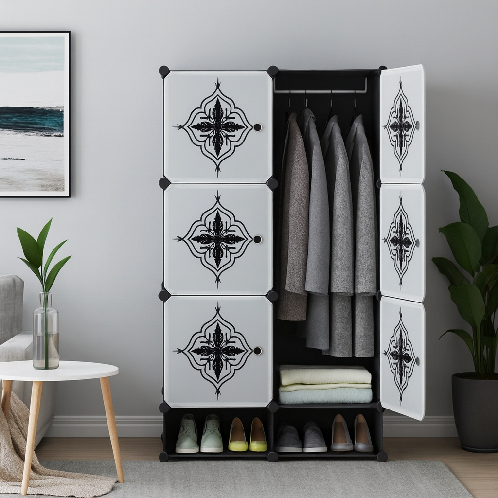 9 cases modulables : idéales pour suspendre les vêtements, ranger les chaussures, sacs ou accessoires.