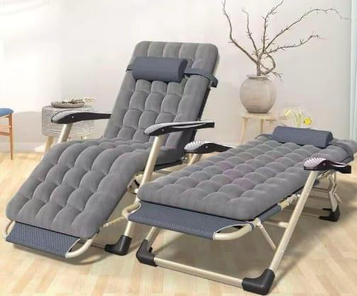 Chaise relax multi-positions avec coussin épais et appui-tête confortable. Structure solide, stable et pliable pour un rangement facile. Idéale pour se reposer à la maison, sur la terrasse ou au salon.