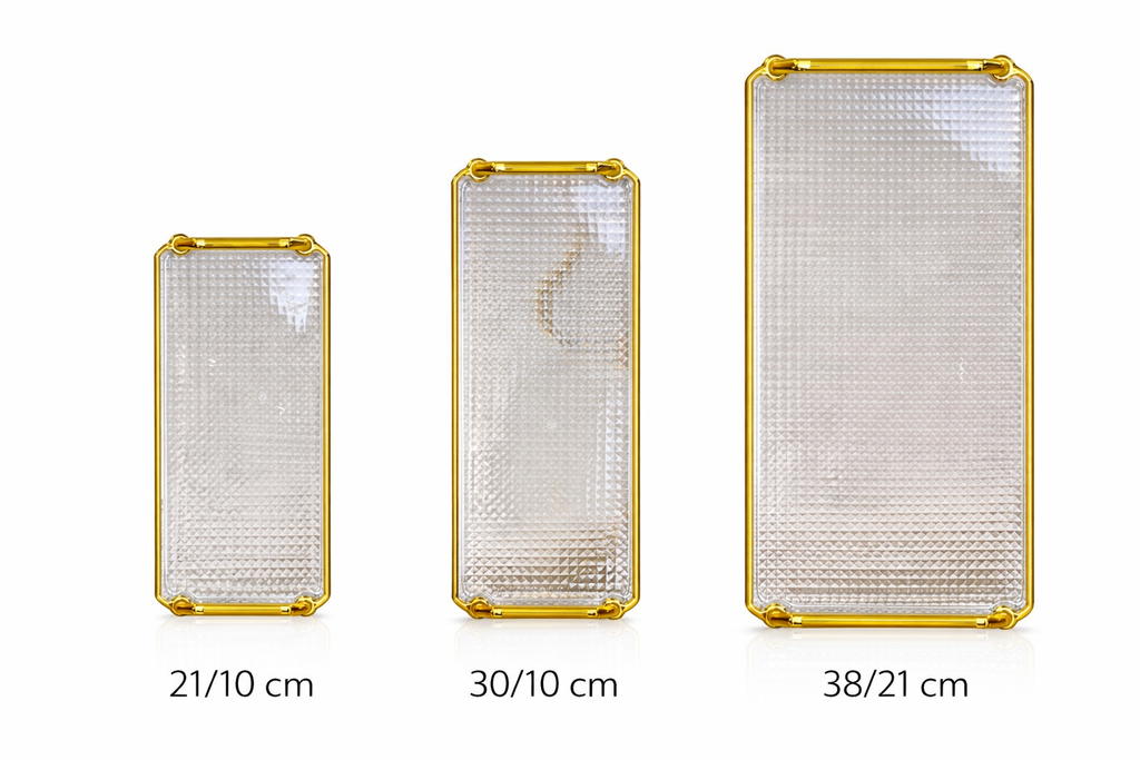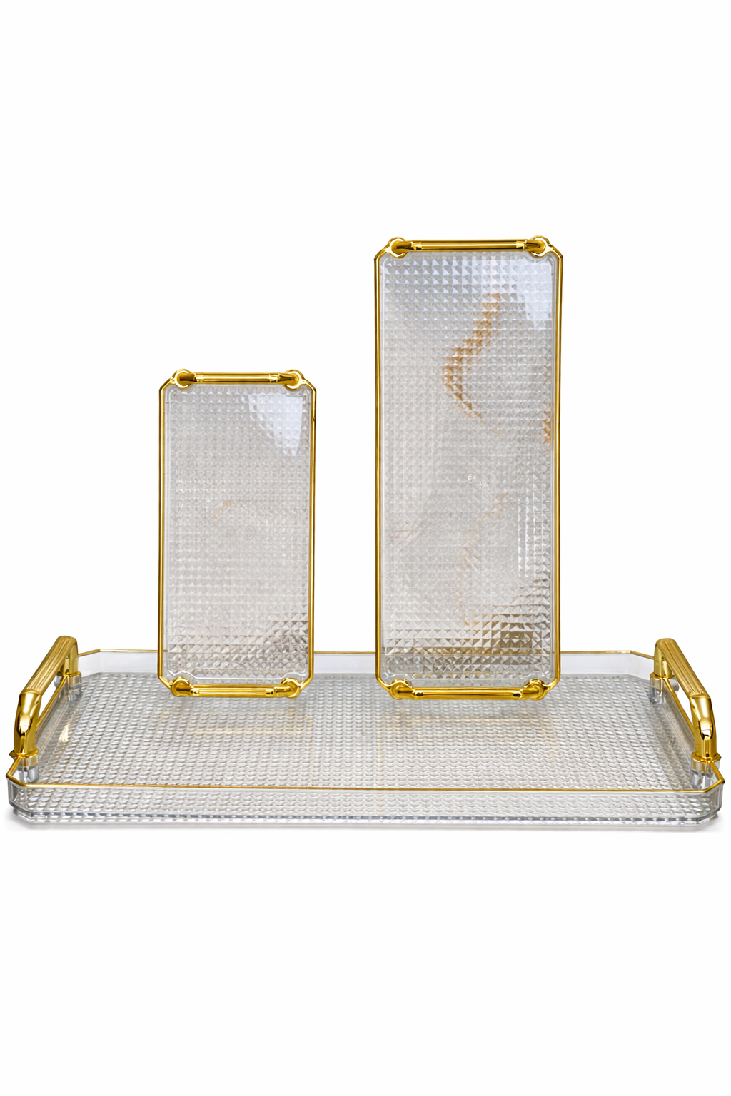 Ensemble de 3 plats de service en acrylique transparent avec finitions dorées, élégants et pratiques pour le dressage.